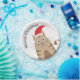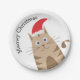 Cute chaton portant un chapeau santa qui vous souhaite de beaux noël. Caricature drôle chat animal vacances d'hiver décor