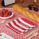 Assiettes En Carton Noël Au Cabine Red Nautical Stripe Lake