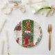 Poodle Dog Noël assis à l'extérieur de la maison décorée avec la couronne de Noël, le sapin de Noël est une idée cadeau de Noël parfait pour les amoureux de les chiens.