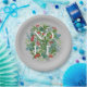 Le mot NOEL parmi les feuilles d'hiver et les baies sur un arrière - plan gris (ou toute couleur), ces assiettes en papier sont élégantes pour toute occasion de Noël de vacances. CORRESPONDRE des articles dans notre magasin.
