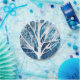 Thème d'hiver bleu et blanc aquarelle peinture d'un bouleau blanc avec arrière - plan de neige. Oeuvres d'art originales sur le thème de Noël. Noël bleu et blanc.