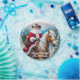 Ce magnifique décor de Noël montre Saint Nicolas dans un casquette cowboy à cheval sur un magnifique cheval de palomino.