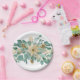 L'assiette en papier de Noël et d'hiver représente un élégant motif floral aquarelle avec des Poinsettias blanches, de la verdure d'Eucalyptus et des baies.