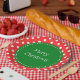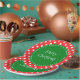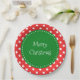 Pois rouges et blancs avec plaque de papier de Noël vert.