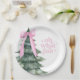Plaques de fête de Noël avec arbre de Noël et arc rose. Oh quel plaisir !