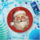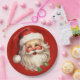 Plaques en papier avec une joyeuse illustration d'un Père Noël de style vintage aux joues rouges roses. portant son chapeau de Père Noël rouge classique et son grand ours blanc. Un spring de saint ajoute à l'esprit festif de fête de ce design.