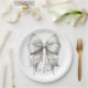 Tendre et élégante assiette en papier avec le titre " Elle noue le noeud " pour votre thème de Baby Shower ruban blanc doré. Produits assortis disponibles dans ma boutique.