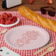 Noeud papillon coquet et fantaisiste pour la douche de mariée moderne boho élégante stylée et écrite à la main décoration de fête papier assiette design. Collection contemporaine rouge et rose.