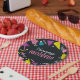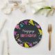 Plate d'anniversaire amusante et colorée pour le cool, radical, bodacieux, tubulaire, et personne d'anniversaire géniale. Un cool, motif des années 80 rétro en noir. Les mots sont personnalisables pour faciliter la personnalisation.