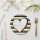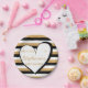 Bandes noires, blanches et dorées avec plaque de papier baby shower coeur. Le design comprend un motif rayé et un coeur au milieu avec votre texte personnalisé.