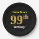 Assiettes En Carton Noir, Faux Gold 99e anniversaire + Nom personnalis