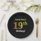 Assiettes En Carton Noir, Faux Or 19e anniversaire + Nom personnalisé