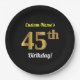 Assiettes En Carton Noir, Faux Or 45ème anniversaire + Nom personnalis