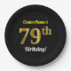 Assiettes En Carton Noir, Faux Or 79e anniversaire + Nom personnalisé