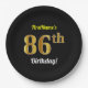 Assiettes En Carton Noir, Faux Or 86e anniversaire + Nom personnalisé