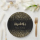 Des assiettes en papier pour Enterrement de Vie de Jeune Fille avec un motif imprimé léopard noir et or pailleté. Personnalisez-les avec deux lignes de texte.
