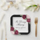 Elégante plaque de papier de mémoire/funéraire florale noir et argent, ornée d'un cadre argenté orné de roses d'aquarelle rouge et rose bordeaux et de fleurs d'haleine pour bébé. Éléments correspondants disponibles.