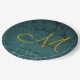 Assiettes En Carton Noir Turquoise foncé Noir élégant mariage Monogram