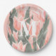 Assiettes En Carton Nom de famille élégant Monogramme Peach Tulips Pei