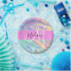 Nom monogramme irisé holographique rose, pêche et aqua, et plaques de papier initiales. Votre nom personnalisé et votre monogramme sont écrits dans un élégant script écrit à la main avec un arrière - plan rose. Un cadeau d'anniversaire ou de Noël parfait !