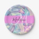 Assiettes En Carton Nom du monogramme d'iridescendance rose-fille