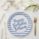 Célébrez votre anniversaire avec ces amusantes plaques en papier rayé bleu et blanc. La motif géométrique tendance est un simple motif à rayures bleues et blanches avec des confettis. Il y a un cercle blanc au centre pour votre texte et un modèle texte pour que vous puissiez facilement le changer en vos propres mots, nom ou événement. Ce design convient à toutes les occasions, y compris les fêtes d'anniversaire, les douches, les anniversaires, les diplômes, etc. Il suffit de modifier le texte pour qu'il corresponde à l'événement.
