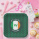 Plaques de papier carré SHAMROCK monogramme modernes, conçues avec un motif shamrock tout-en-un contre un arrière - plan vert foncé. Le drapeau irlandais est placé dans un cercle. Il y a du texte courbe PERSONNALISABLE en haut et en bas du cercle, plus un MONOGRAM qui est également personnalisable. Ce texte peut être remplacé par un message de bienvenue et/ou personnalisé avec votre nom, ou le nom de votre établissement. Idéal pour vos invités ou clients le jour de la Saint Patrick.