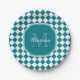 Assiettes En Carton Nom Monogrammé Turquoise et blanc tendance