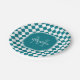 Plaques de papier monogramme motif à carreaux à carreaux géométriques turquoise et blanc tendance. Personnalisez ce design élégant en ajoutant votre nom et votre initiale monogrammée.