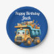 Ce nom personnalisé Happy Birthday plaque papier a un camion de vidage sur elle pour votre petit gars