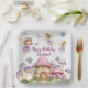 Présentez notre plaque de papier de fête d'anniversaire de fées magiques Purple Garden sur mesure! Avec de jolies fées violettes, des maisons de champignons roses et des papillons, cette assiette de papier fête d'anniversaire est à la fois amusante et ludique et apporte charme et enchantement à toute fête!