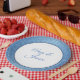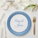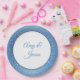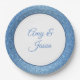 Plaque de papier de fête illustrée dans une belle parties scintillant Bleue fine imprimé autour de la jante et le centre blanc. Votre nom personnalisé dans un script sophistiqué au centre. Montré en 9 po de taille. Vendu en paquet de huit. Customisez cet objet ou achetez tel quel.
