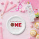 Notre petite boulette de viande tourne une première plaque de papier d'anniversaire pour bébé. Elles sont blanches, rouges et brunes avec le mot "One" en gros caractères avec une jolie illustration de boule de viande comme première lettre du mot. Simplement, customisez ces assiettes, ajoutez-les à votre panier, et joyeux anniversaire à votre merveilleux bébé! Notre Petite Boulette De Viande Tournant Un Premier Anniversaire Plaques De Papier Conception Jour De Fête | ©Melissa Patton - Artiste/Illustrateur