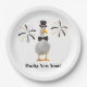 Célébrez le style canard du Nouvel An ! Cette plaque en papier est composée d'un mignon canard à potiron blanc avec chapeau, cravate arc et feux d'artifice. Le message "Nouvel An Ducky !" peut être changé en n'importe quelle copie de votre choix.