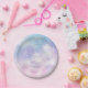 Plaque de papier de douche nuptiale, romantique et rêveuse, avec aquarelle illustrant le ciel rose, violet et bleu avec nuages et étoiles.