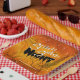 Des branches déplaisantes s'étendent à travers une maison hantée qui se dresse d'un ciel nocturne brumeux, parsemée de chauves-souris noires et de visages citrouilles étincelants. La typographie audacieuse de 'Scary Scary Night', ainsi que votre nom et votre message (nous avons ajouté 'mangez, buvez et soyez prudent' comme exemple) sur cette serviette en papier colorée, ajoute les touches de finition pour un Happy Halloween. Cherchez ID946 pour voir d'autres produits et options de couleur pour cette effrayante conception Halloween.