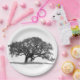 Une photo en noir et blanc d'un beau chêne qui s'étend.
