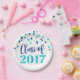 La classe personnalisable de fête de remise des diplômes de 2017 plats dans le motif bleu de confettis d'aquarelle et la main élégante a marqué avec des lettres le texte de style.
