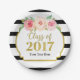 Classe personnalisable de fête de remise des diplômes de 2017 plats dans le motif noir et blanc classique de rayures, les fleurs vintages d'aquarelle rose, et les détails d'or.
