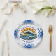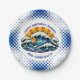 Boy's birthday party in a nautical or maritime theme paper plates. A pop art ocean wave in blue and orange. Add child's name in the personalize area.