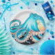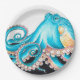 Assiettes En Carton Octopus Bleu Sur Encre Blanche