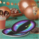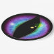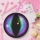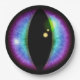 Plaque de papier amusante avec un grand oeil bleu et violet avec pupille éclairée.