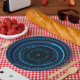 Assiette en papier de science-fiction avec un œil de robot extraterrestre bleu.