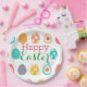 Texte moderne en rose et vert avec motif de répétition des oeufs de Pâques.