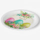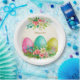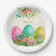 Assiettes en papier personnalisées pour fête avec œufs de Pâques floraux et roses roses