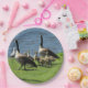 Assiettes En Carton Oies du Canada sur l'herbe par la plaque à papier