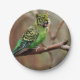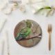 Ces assiettes en papier ont un drôle de chat-oiseau sur elles.