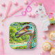 Ces plaques en papier ont un dinosaure d'oiseau dessus.