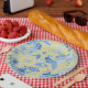 Assiettes En Carton Oiseaux Toile Bleu et moutarde