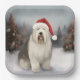 Assiettes En Carton Old English Sheepdog en Noël de neige